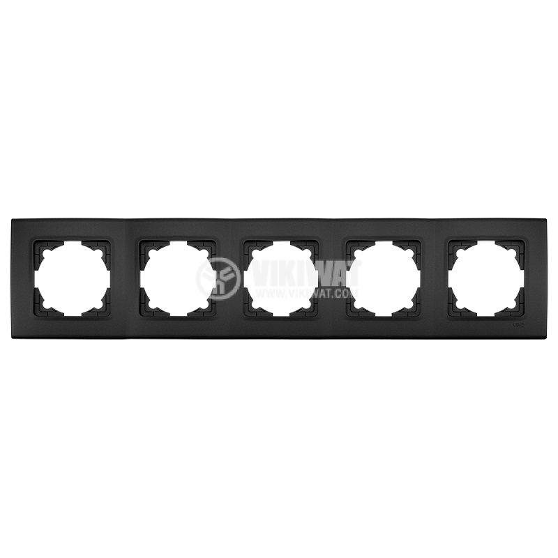 Петорна рамка, в черен цвят, за ел. ключове и контакти, от серия Linnera life на Viko Panasonic. Може да се комбинира с различни механизми oт същата серия. Новият изчистен дизайн в черен цвят е подходящ за жилищни, търговски и офис сгради. 90484005-BG