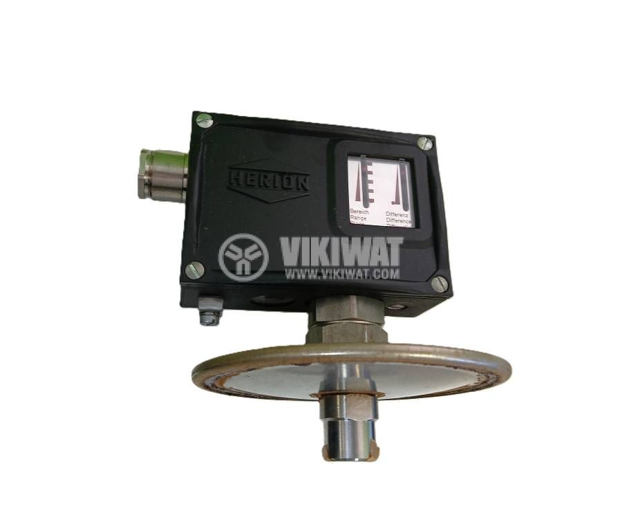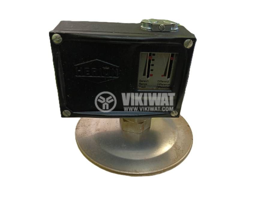 Pressure switch d3nG5 with adjustable range from 0 to 160 mBar, load capacity 5A/250VAC, metal housing, Polish production by HERION. Old production from the USSR, unused.