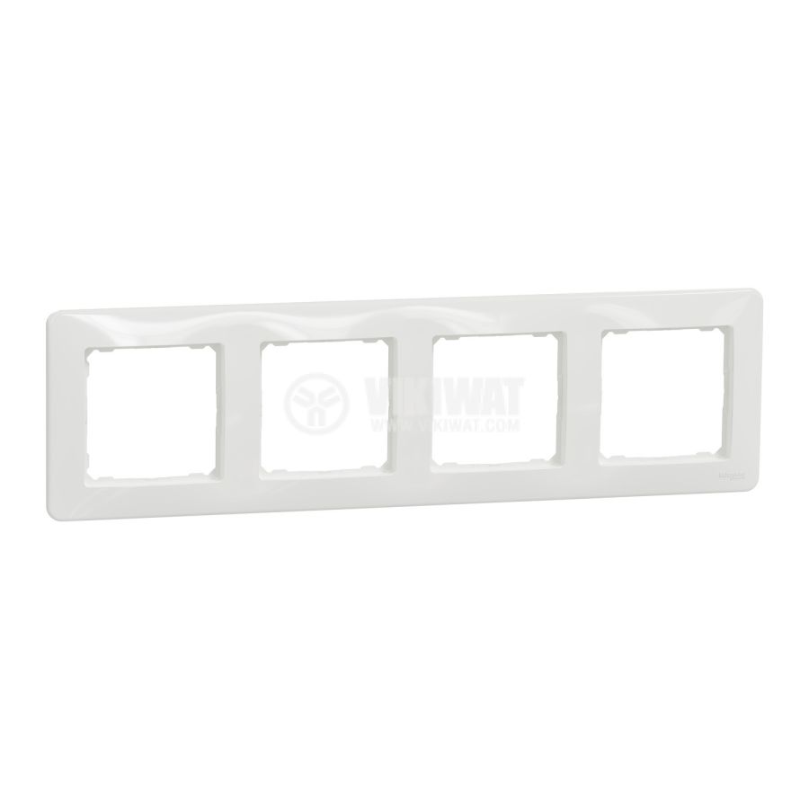 Quadruple decorative frame for electrical switches and sockets in white, from the Sedna series by Schneider Еlectric - SDD311804. Can be combined with mechanisms in different colors from the same series.