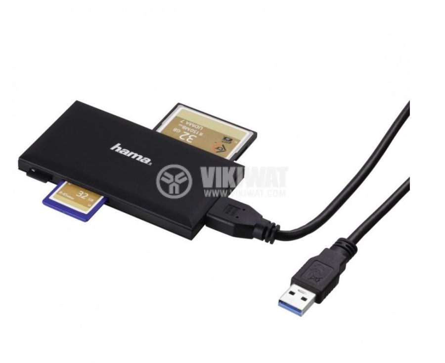 Universal compact USB 3 reader from HAMA, for SD/MicroSD cards, for reading from card and writing to card, powered via USB.