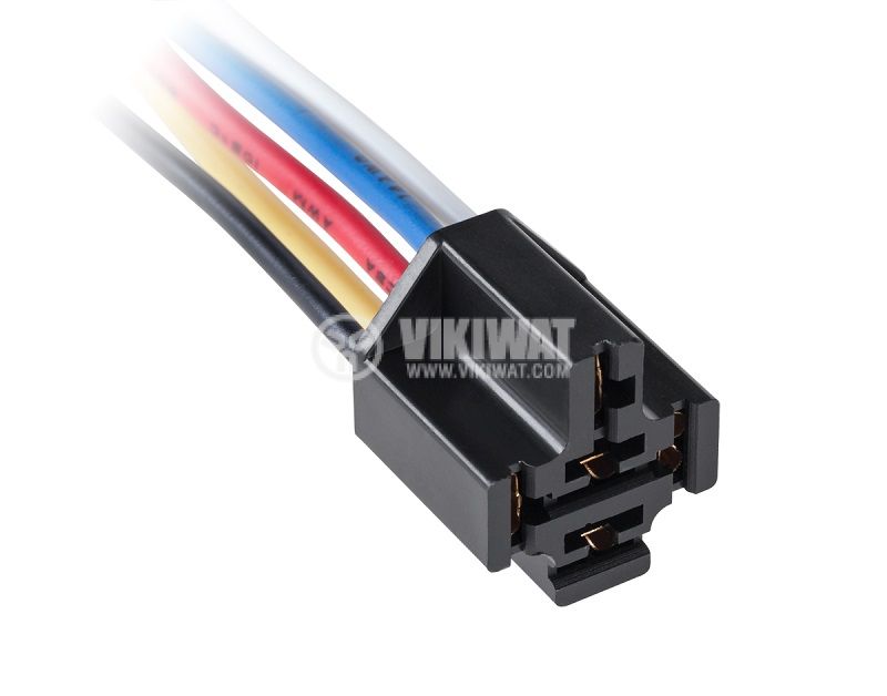 Socket PRE0008, designed for automotive relays AS403 / AS402, nominal voltage 14 VDC, nominal current 30 A, 5 pins, 5 wire terminals.