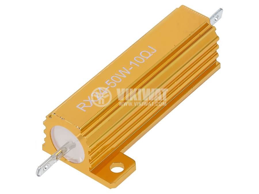 Resistor model 0-1625984-5 from SR PASSIVES, with a resistance of 10 ohm, power 50W, tolerance of ±5%, wired, for soldering.