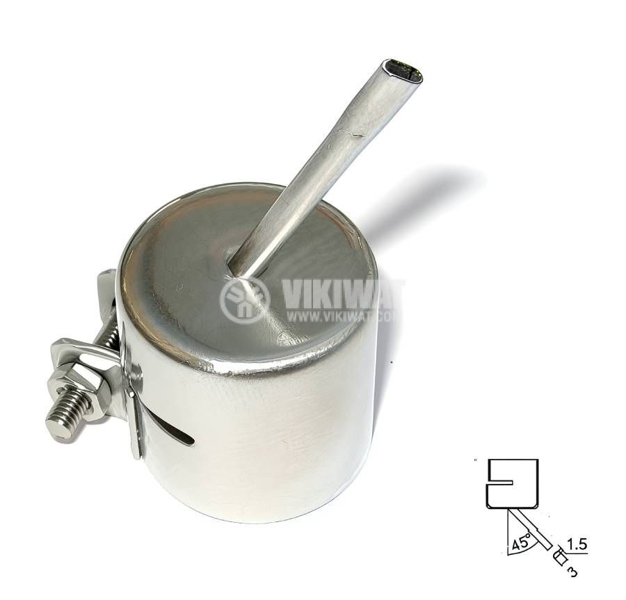Резервна дюза 79-3929 от ZHONGDI, предназначена за пистолет за горещ въздух за разпояваща станция, с размер на върха 1.5x3 mm, диаметър на захващане ф19 mm. Подходяща за станции ZD-939 и 939L.