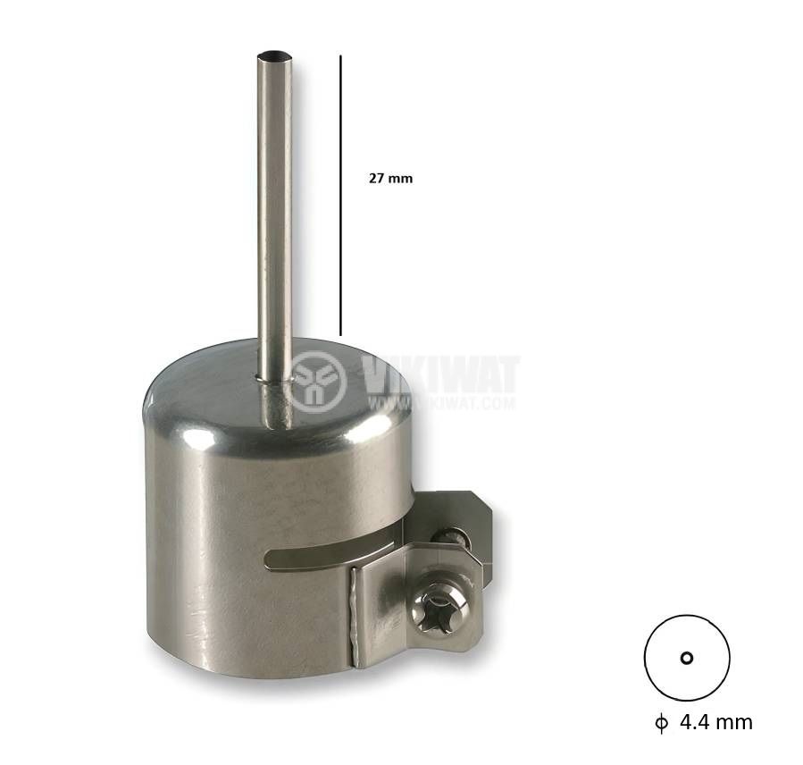 Резервна дюза 79-3907 от ZHONGDI, предназначена за пистолет за горещ въздух за разпояваща станция, с размер на върха ф4.4x27 mm, диаметър на захващане ф19 mm. Подходяща за станции ZD-939 и 939L.