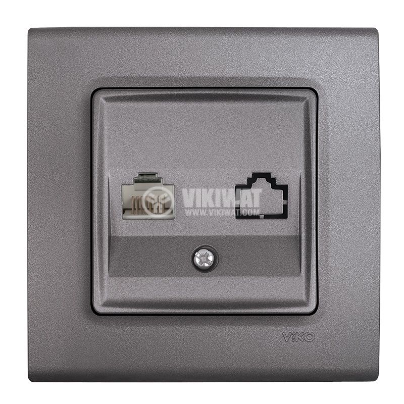 Розетка за компютър, в сив цвят, предназначена за вграждане, от серия Linnera life на Viko by Panasonic (90402032-BG). Новият изчистен дизайн в сив цвят е подходящ за жилищни, търговски и офис сгради.