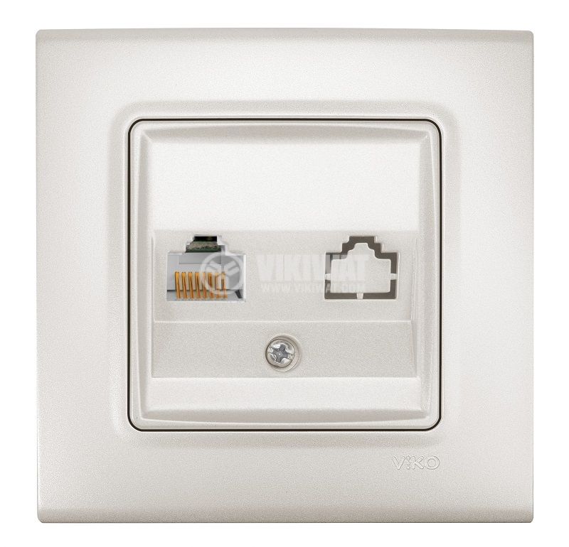 Розетка за компютър, двойна, в цвят перла, предназначена за вграждане, от серия Linnera life на Viko by Panasonic (90403034-BG). Новият изчистен дизайн в перлено бял цвят е подходящ за жилищни, търговски и офис сгради.