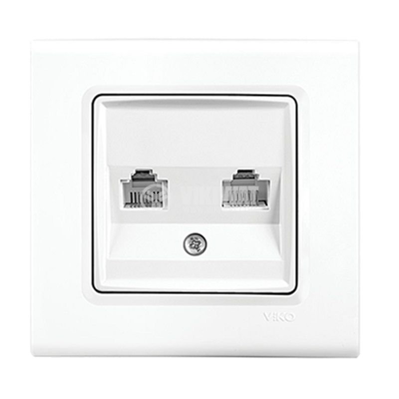 Розетка комбинирана, Cat 5e + Cat3, в бял цвят, предназначена за вграждане, от серия Linnera S на Viko Panasonic (91400035). Новият изчистен дизайн в бял цвят е подходящ за жилищни, търговски и офис сгради.