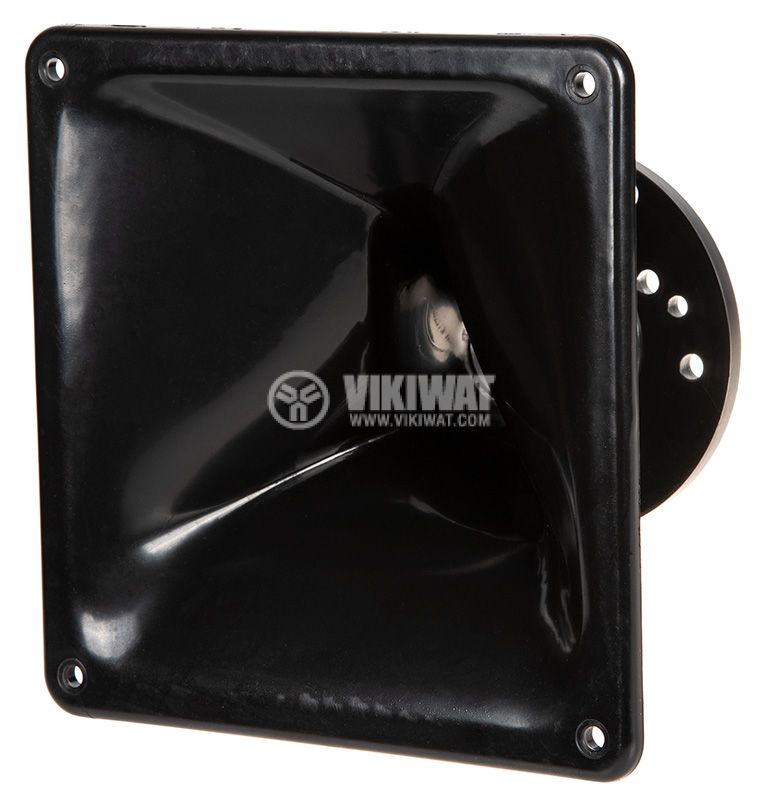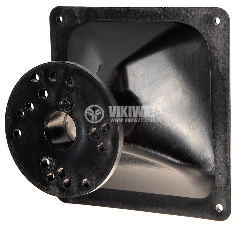 Черна рупор фуния модел JH5309 с размери 160 x 160 x 115 mm и фланец с резба ф22 mm.
