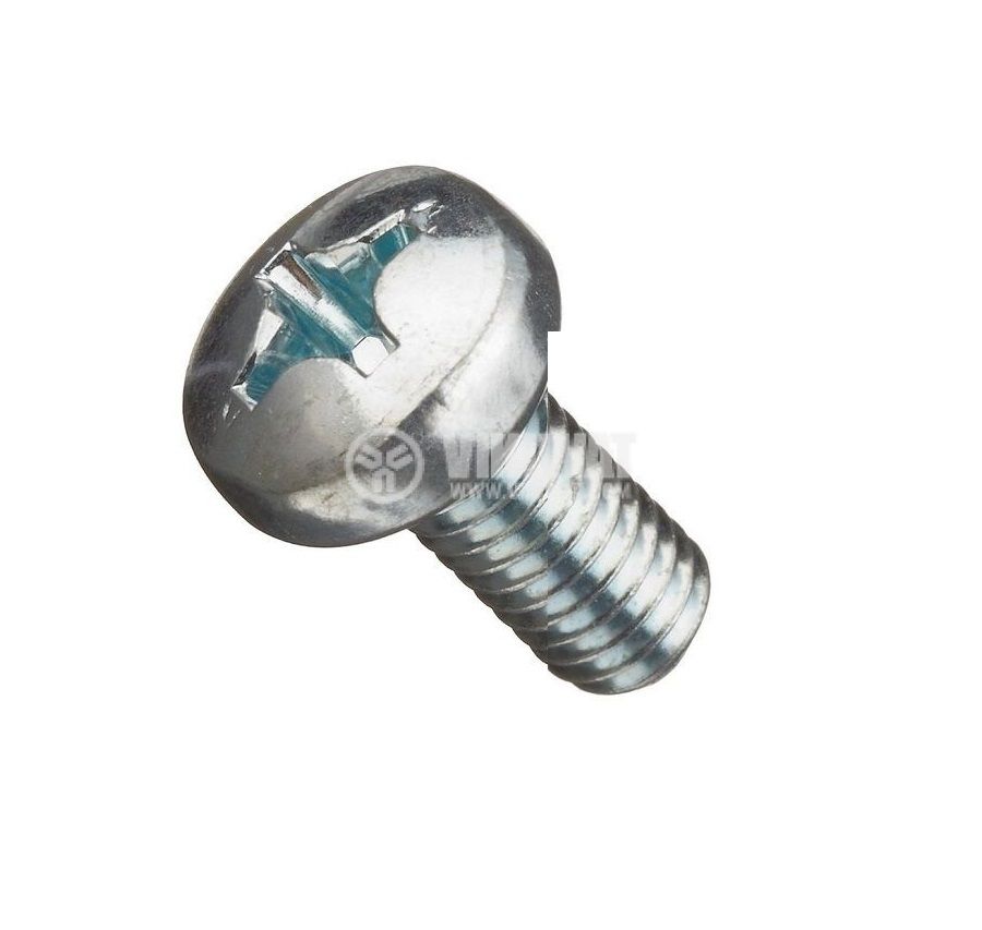 Bolt with half round head and dimensions M6x8 mm, for screwing with a cross screwdriver