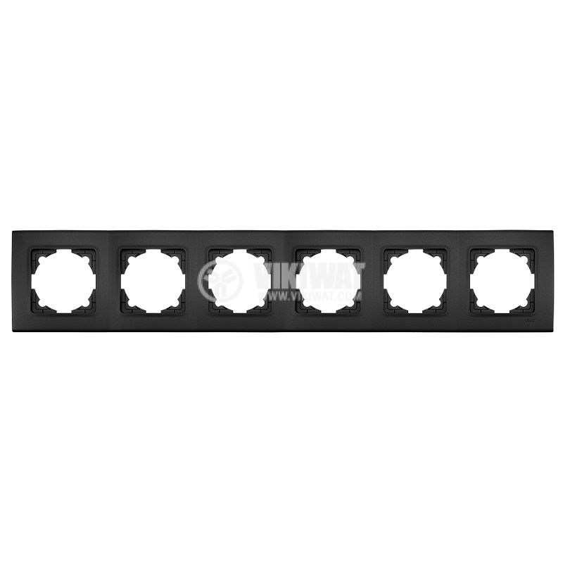 Шесторна рамка, в черен цвят, за ел. ключове и контакти, от серия Linnera life на Viko Panasonic. Може да се комбинира с различни механизми oт същата серия. Новият изчистен дизайн в черен цвят е подходящ за жилищни, търговски и офис сгради. 90484006-BG