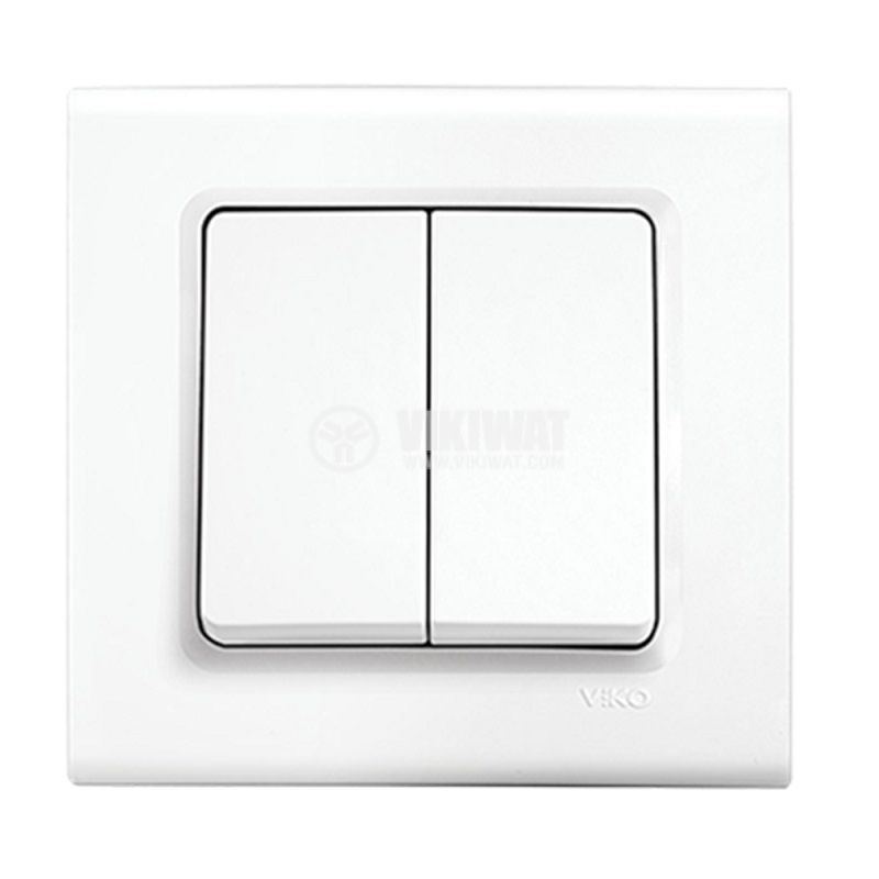 Switch one-way double, for built-in, white, Linnera S from Viko by Panasonic suitable for wall mounting. Modern, minimal design in white color suitable for residential, office and commercial buildings.