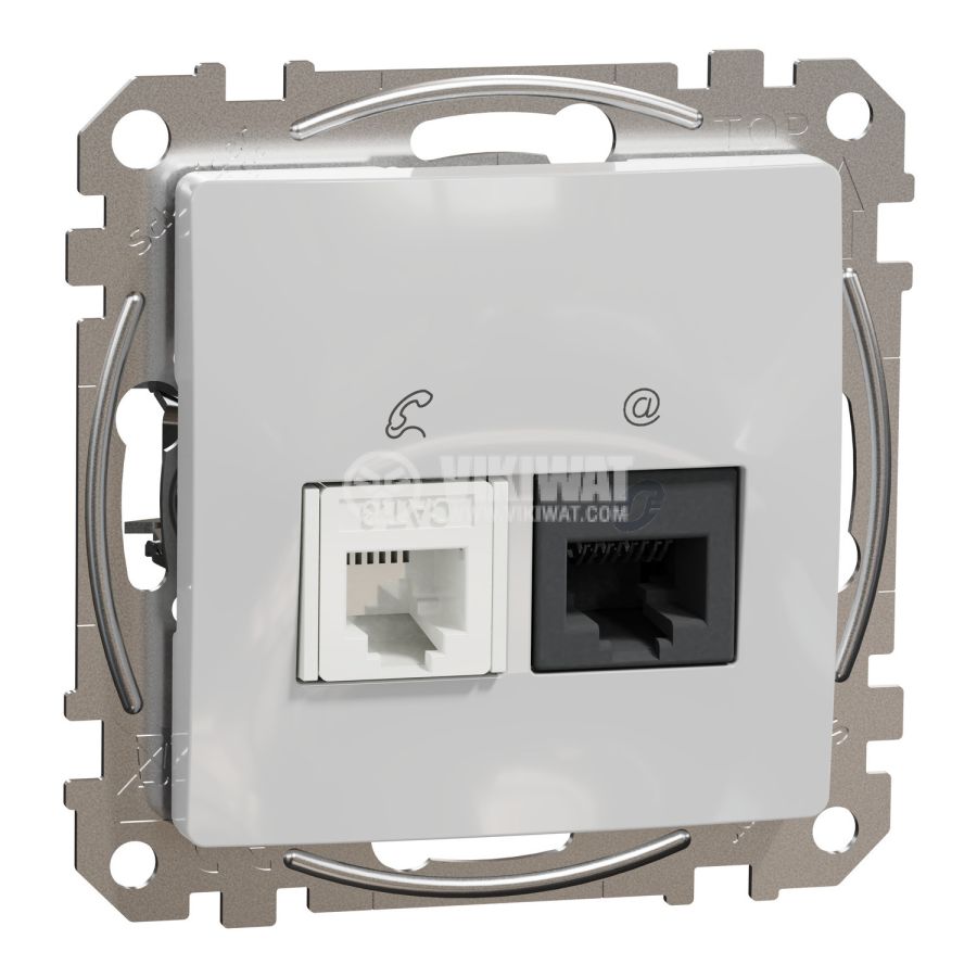 Telephone socket, in aluminum color, designed for built-in use, from the Sedna series by Schneider Еlectric - SDD113468. The new clean design of the Sedna series is suitable for residential, commercial and office buildings.