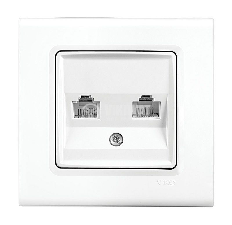 Telephone wall socket, double, for built-in, white, Linnera S from Viko by Panasonic suitable for wall mounting. Modern, minimal design in white color suitable for residential, office and commercial buildings.