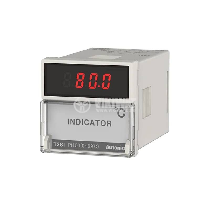 Термоконтролерът индикатор T3SI-N4NP4C-N е компактен и прецизен с обхват от 0°C до 400°C , захранващо напрежение 100-240 VAC и съвместим с термодвойки от вида RTD: DPt100.