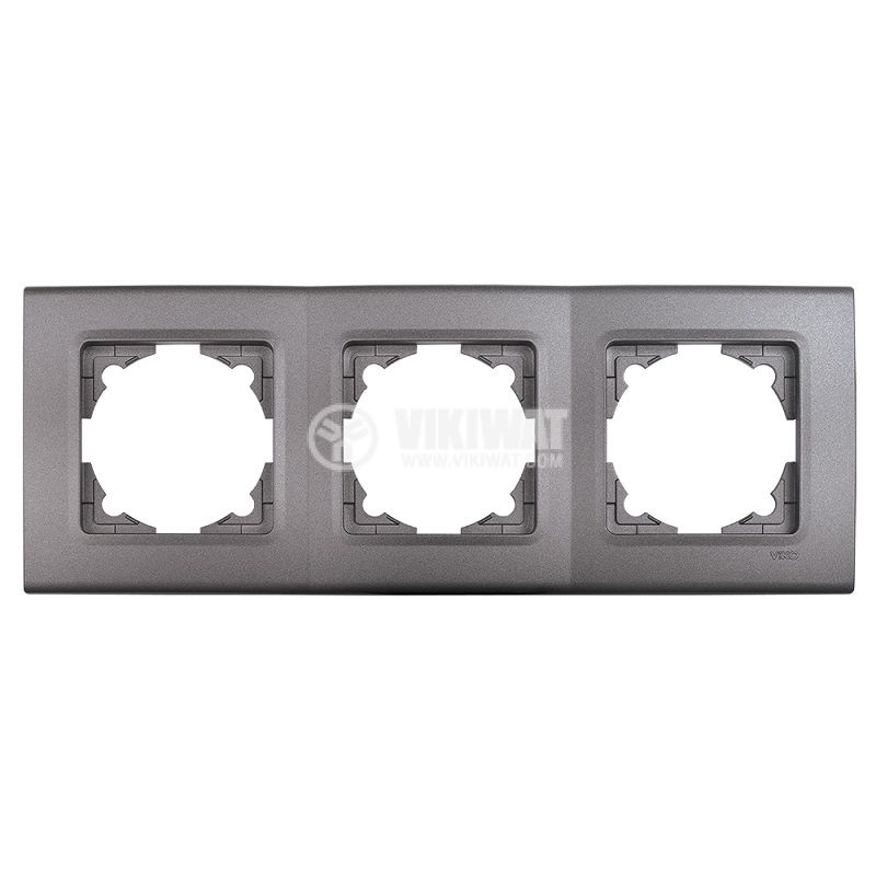 Тройна рамка, в сив цвят, за ел. ключове и контакти, от серия Linnera life на Viko Panasonic. Може да се комбинира с различни механизми oт същата серия. Новият изчистен дизайн в сив цвят е подходящ за жилищни, търговски и офис сгради. 90482003-BG