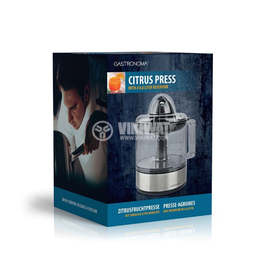 Цитрус пресата 18230101 от Gastronoma с мощност 30 W и компактен дизайн. Тя ви помага бързо да приготвите цитрусов сок, идеален за правилно започване на деня и капацитет на резервоар 0.8 литра.