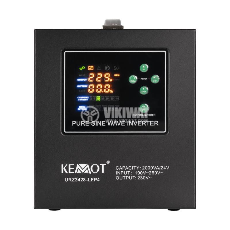 Аварийно захранване (UPS), URZ3428-LFP4, от KEMOT, пълна синусоида с ниска честота - 50 Hz, външен акумулатор до 200 Ah (24 VDC) и изходяща мощност 1400 W. Аварийно захранване за циркулационни помпи за локално парно, пелетни горелки, както и други електроуреди. Да не се свързва със стартови акумулатори.
