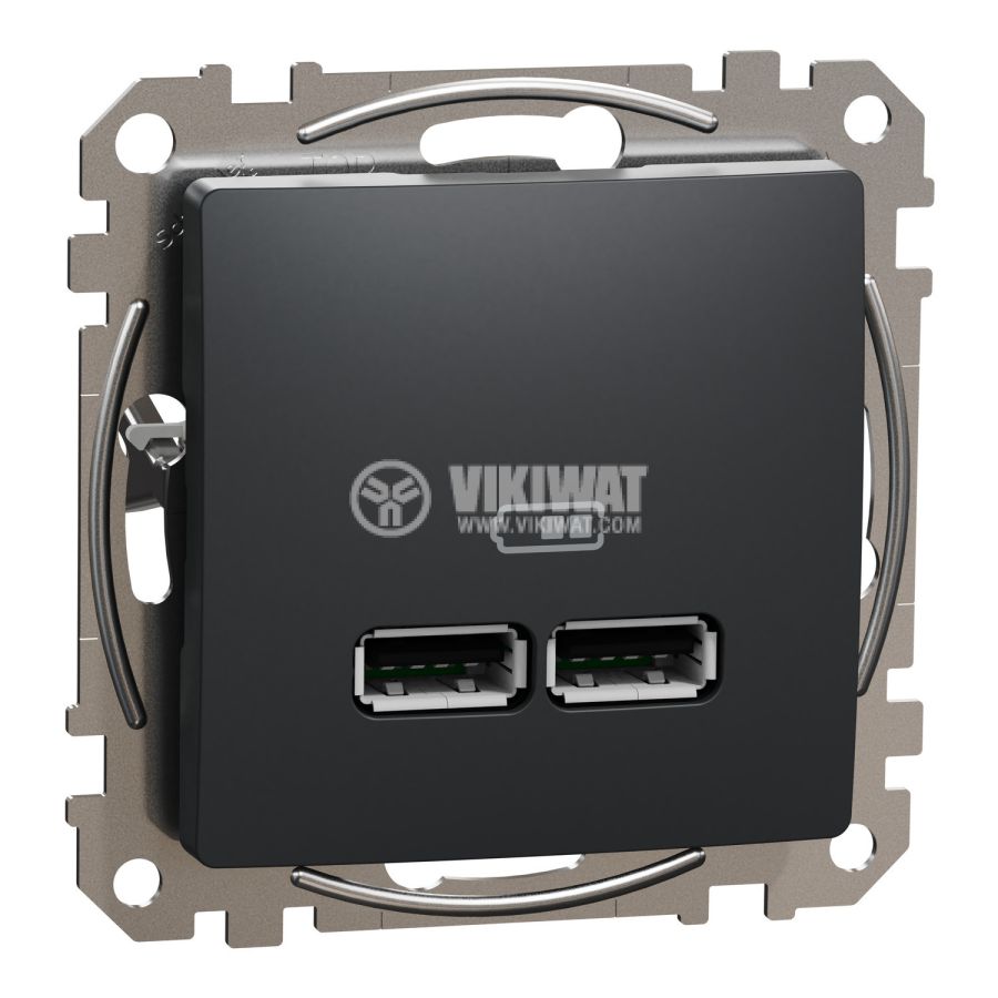 USB 2.0 socket, in anthracite color, designed for built-in use, from the Sedna series by Schneider Еlectric - SDD114401. The new clean design of the Sedna series is suitable for residential, commercial and office buildings.