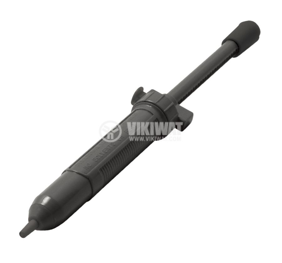Помощно средство в процеса на разпояване. Този инструмент служи за разпояване на компоненти от печатни платки - премахва излишният припой чрез силно засмукване. Когато върхът на помпата се постави върху затопления припой и бутонът се натисне, механизмът създава вакуум, който извлича припоя в резервоар си, оставяйки по-чиста контактна повърхност. Подходящ е за ремонти на електроника, сервизни дейности, преоборудване и ремонт на платки, където трябва да се премахнат резистори, кондензатори, интегрални схеми или други електронни елементи.