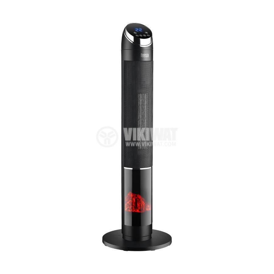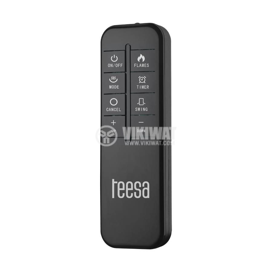 Вентилаторна печка, TSA9017 от TEESA, с електронен датчик, LED досплей с тъч контрол, три нива на работа вентилатор, 1000 или 2000W, въртене на 60°, ефект камина и дистанционно управление (без батерии в комплекта).