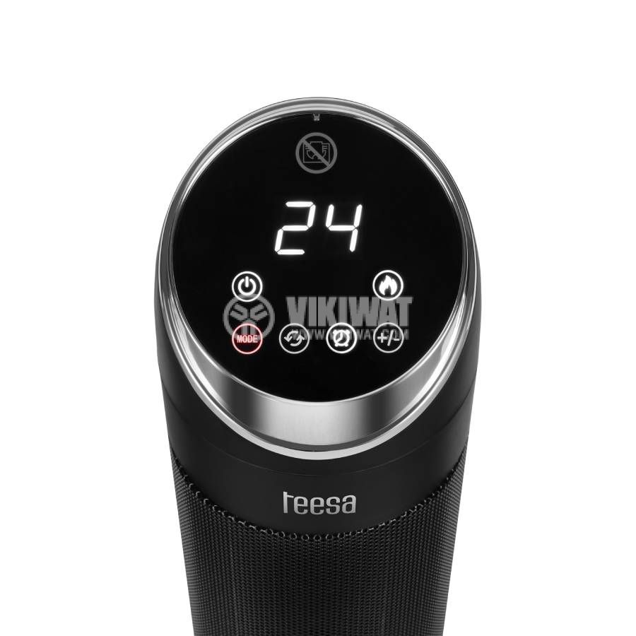 Високотехнологична вентилаторна печка от Тееса с LED дисплей с тъч контрол за настройка на температурата, както и дистанционно контролиране на температурата чрез дистанционно. Печката предлага функция за вентилатор, автоматично завъртане на 60 градуса, защита против претоварване и прегряване както и таймер за изключване.