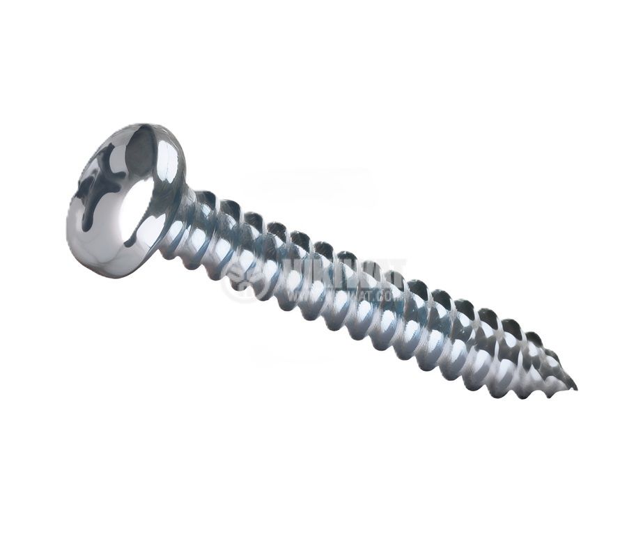 Самонарезен винт, цяла резба, с размери 3x10 mm, предназначен за метал, за завиване с кръстата отвертка.