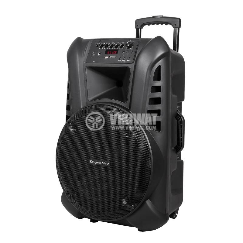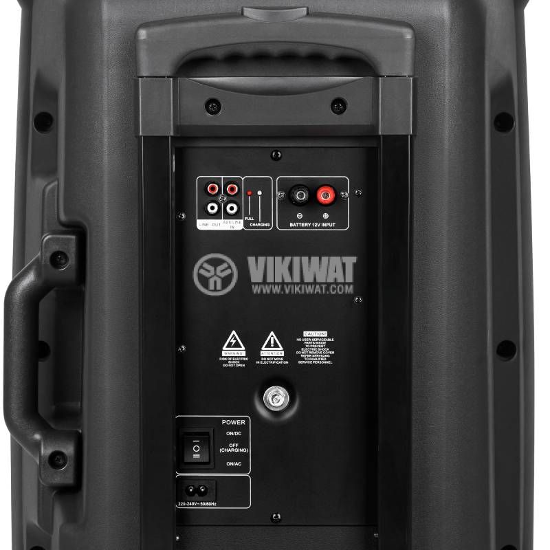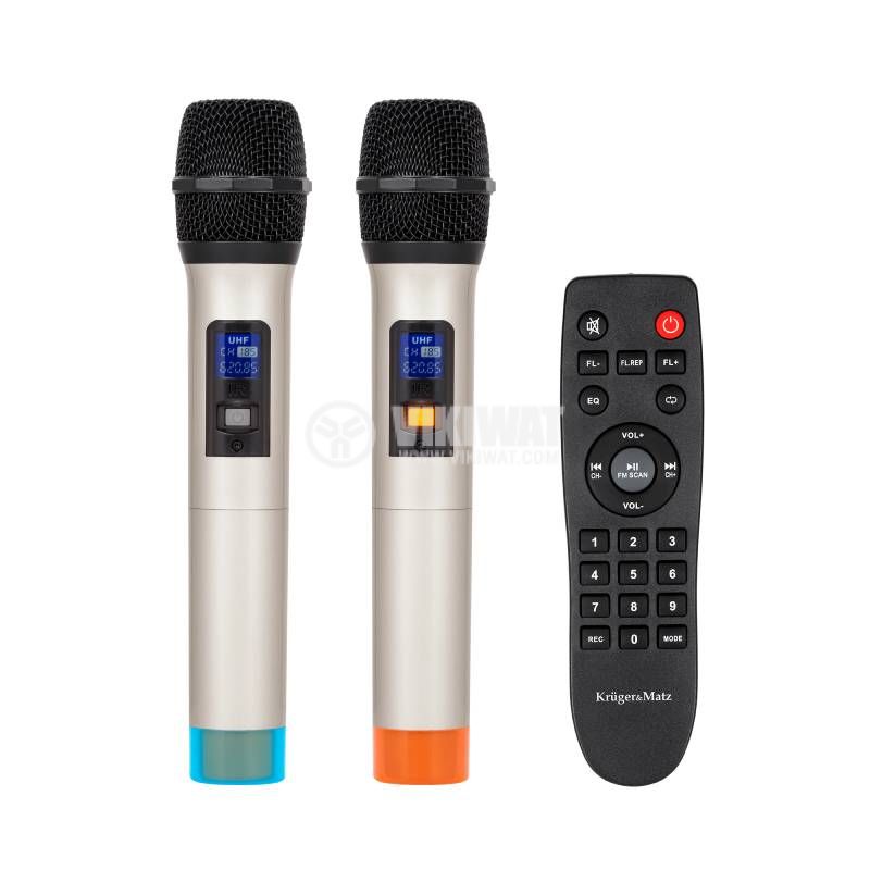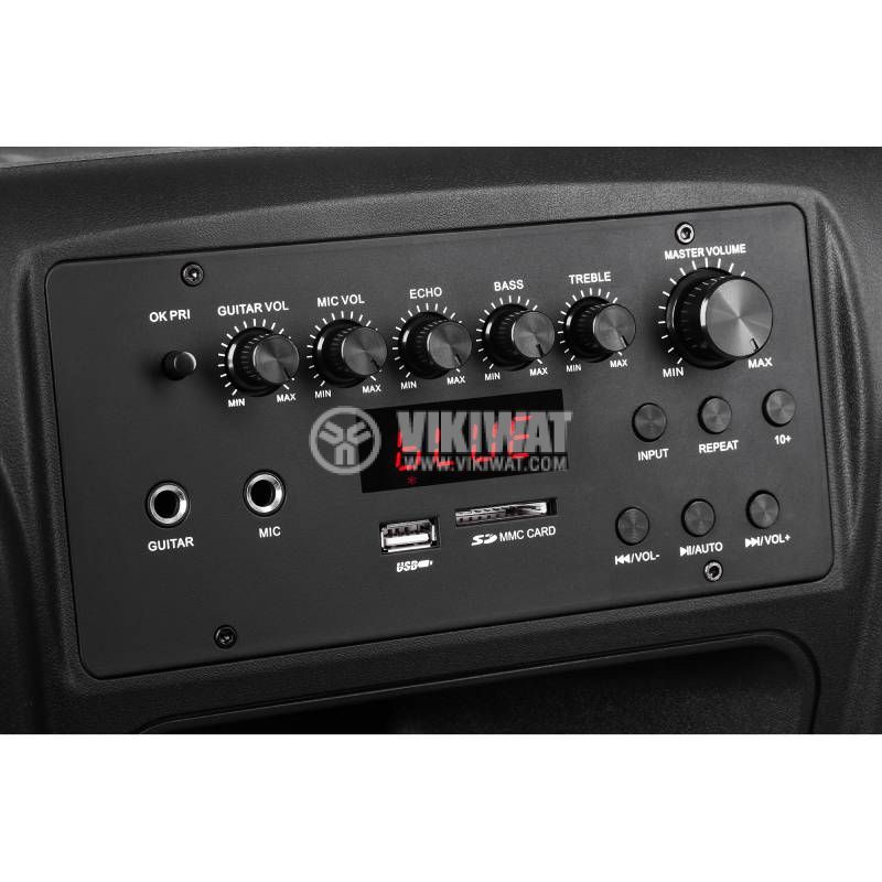 Караоке Bluetooth колона с мощност 60 W, слот за SD карта, USB 2.0, вход 6.3 mm, вход 2xRCA, изход 2xRCA. Комплектът включва два микрофона.