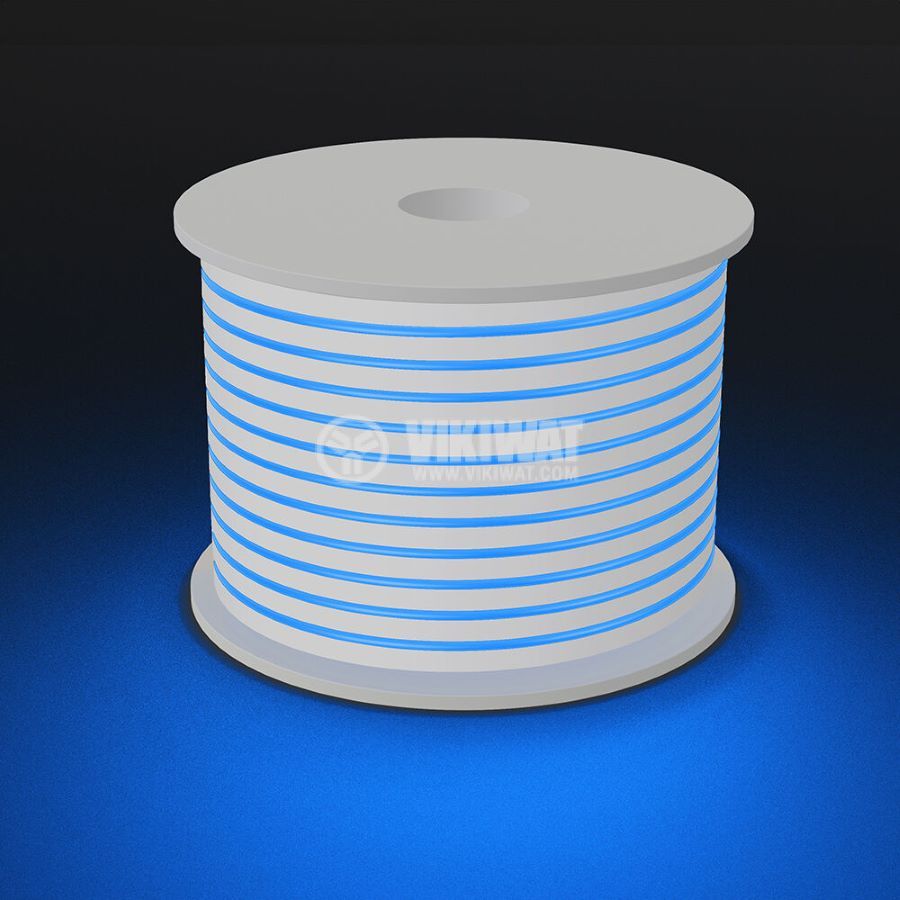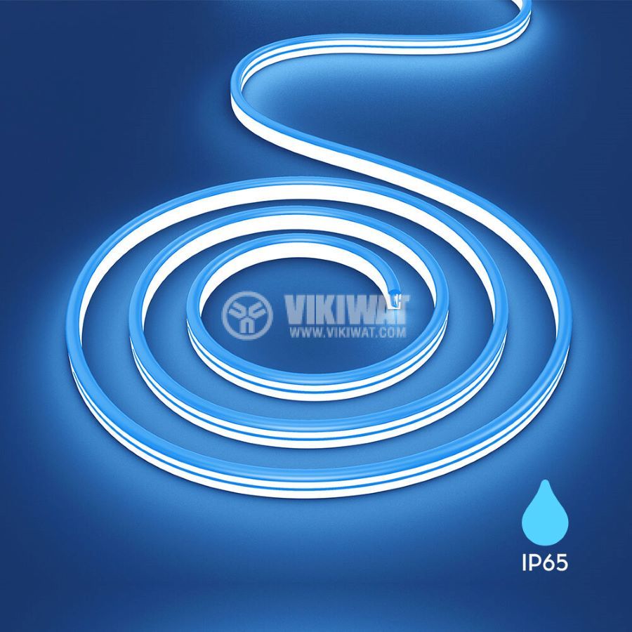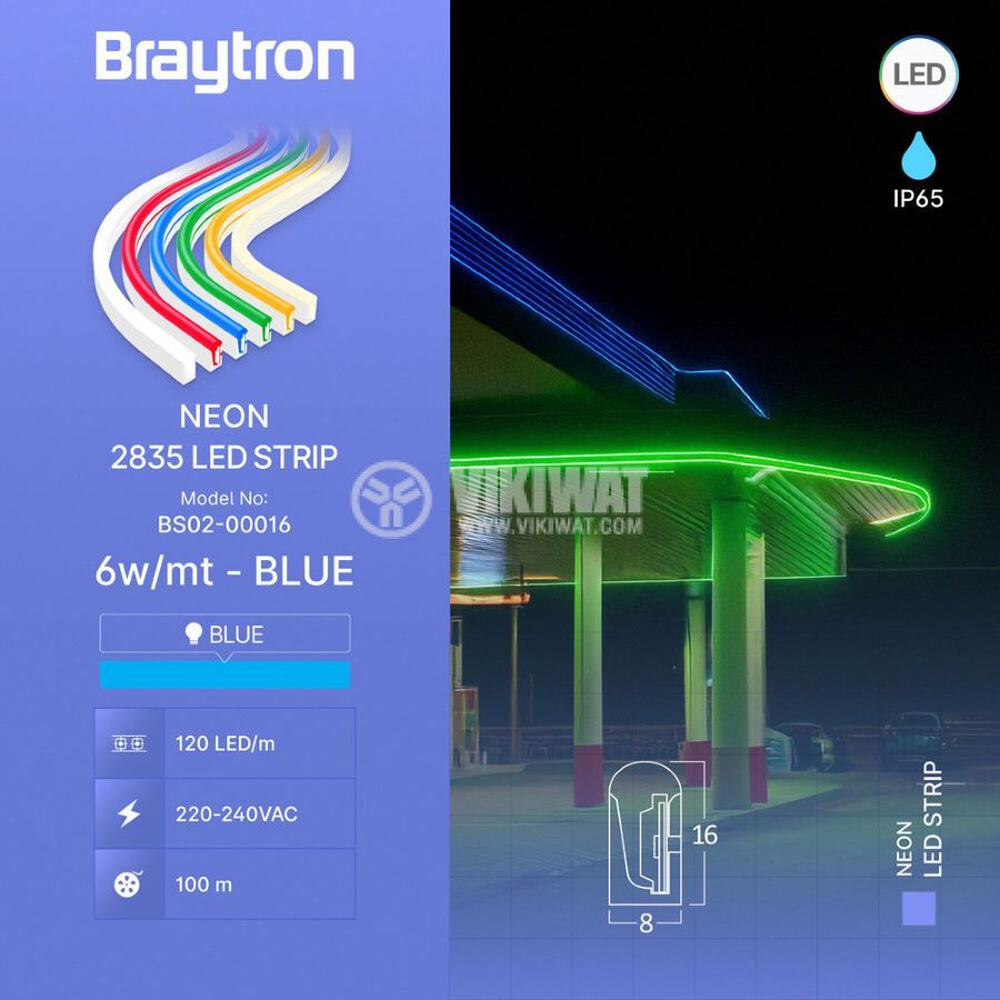 Waterproof, flexible LED neon LED strip from Braytron, with a supply voltage of 230 VAC, power consumption of 6 W / m, glowing in blue light with a luminous flux of 550 lm. Suitable for decorative lighting.